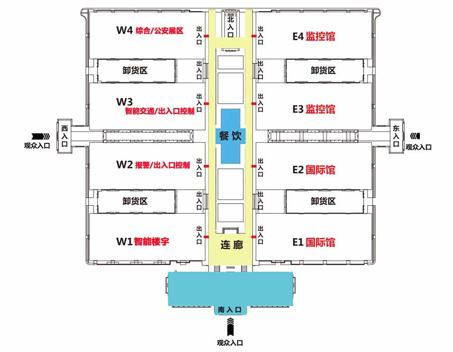 2016年中國國際安博會展館總分布圖如下: